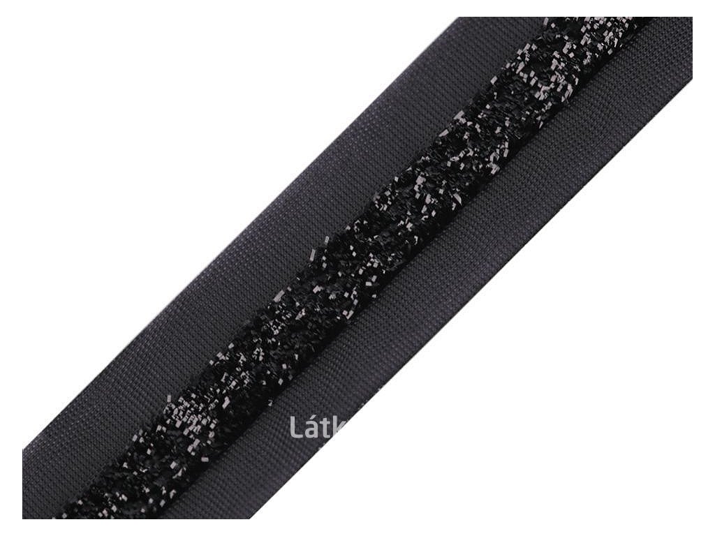 Stuha / lampas se nevšedně třpytí díky proužku, který je prošitý lurexovým vláknem. Bude jedinečnou ozdobou vašich oděvů, módních doplňků, dekorací nebo bytového textilu (polštářů, ubrusů, apod.). Skvěle pak vynikne také jako lampas kalhot, mikin nebo halenek.