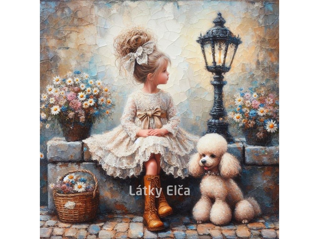 Panel bavlna - holčička a bílý pudl 2