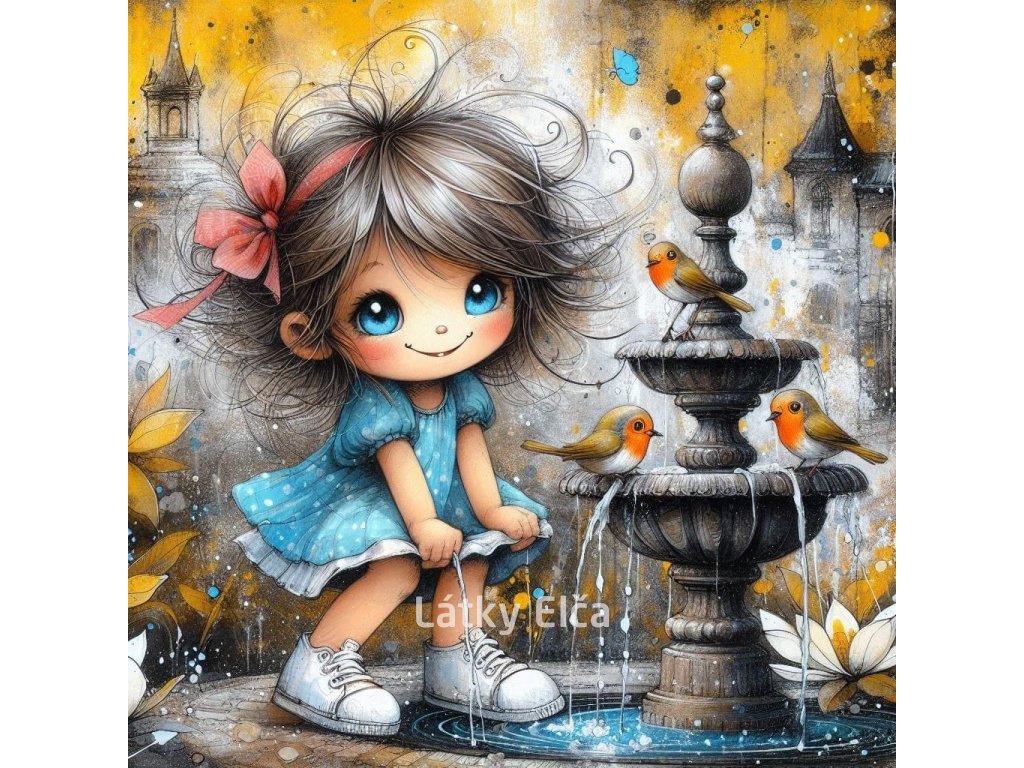 Panel bavlna - holčička a fontána 3