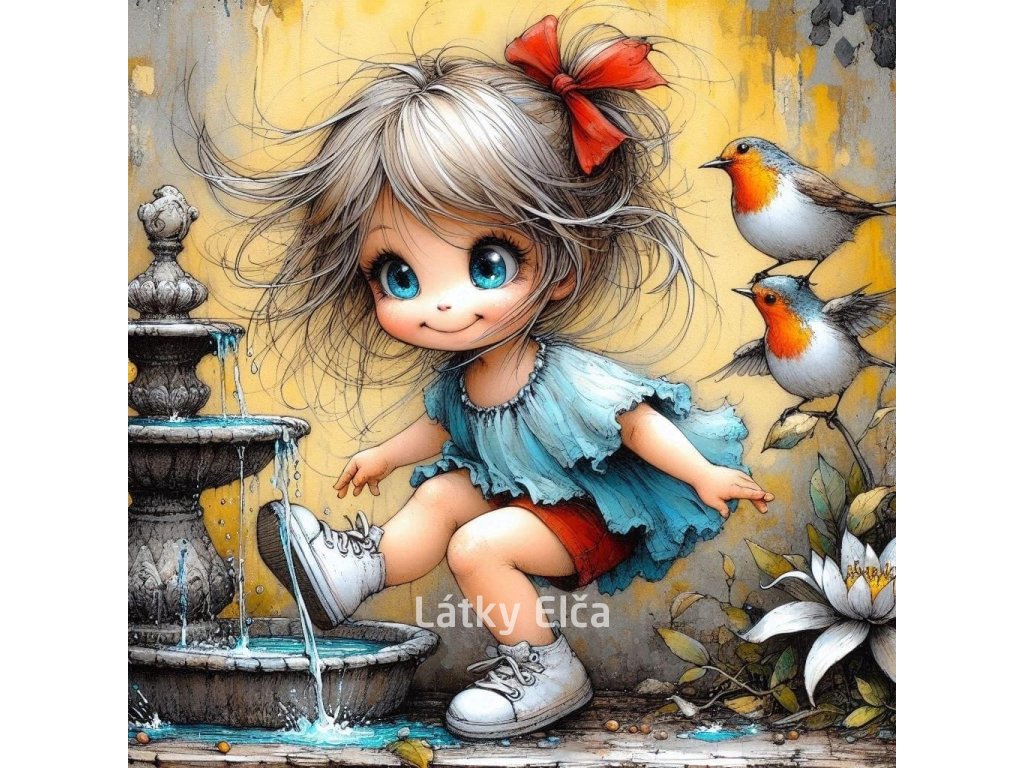 Panel bavlna - holčička a fontána 5