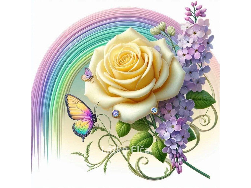 Panel motýl, růže a šeřík 1