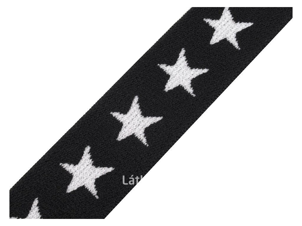 Pruženku zdobí stylové hvězdy. Je elastická (tažná), po roztažení se vrátí zpět do původního stavu.
