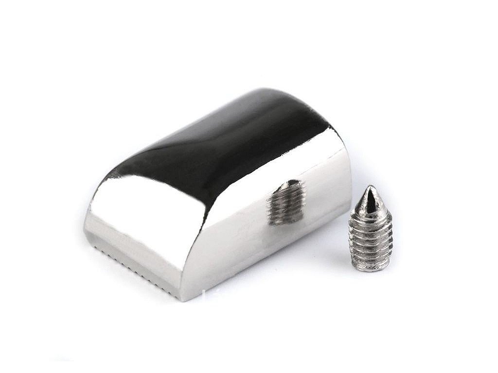 Elegantní kovovou koncovku využijete na zakončení zipu, převážně u kabelek nebo tašek. Schováte do ní nevzhledné konce a šroubkem je zespodu přišroubujete, aby koncovka nevypadla.