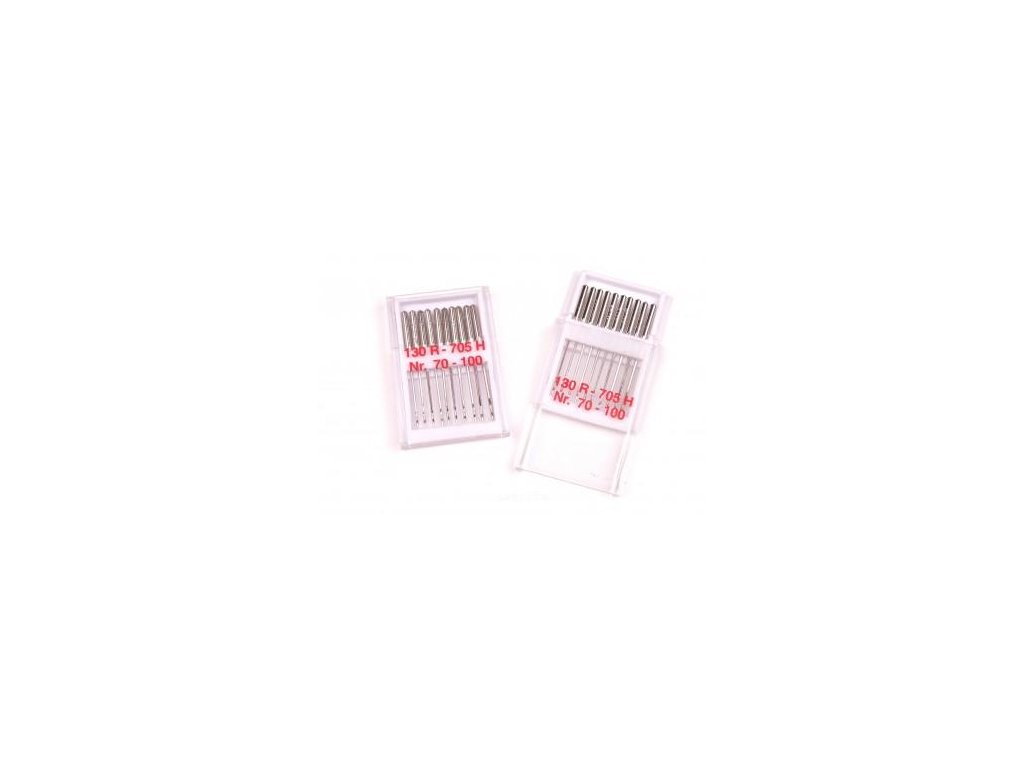 Standartní univerzální strojová jehla s ploškou pro domácí šicí stroje. 10 jehel v krabičce - 2x70, 4x80, 2x90, 2x100).