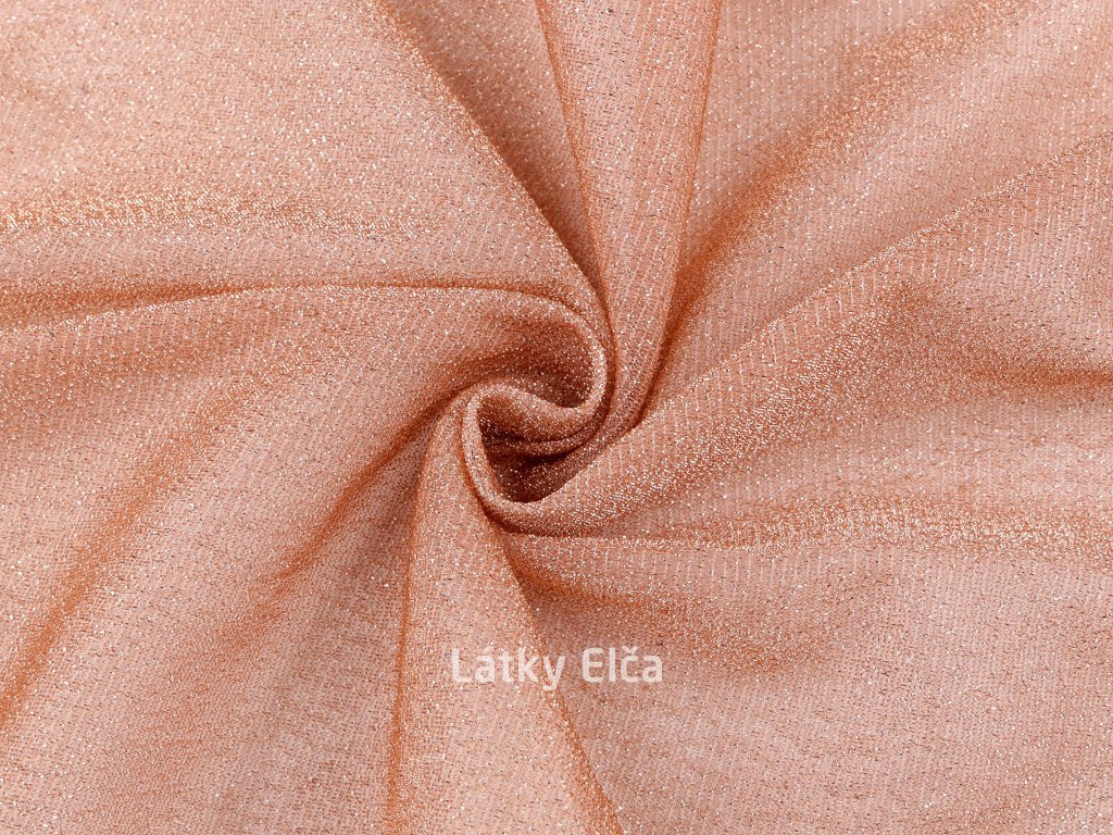 Třpytivý úplet je protkaný luxerem, který mu dodává slavnostní vzhled. Je splývavý, lehký, z rubové strany hladký a pruží víc do šířky než do délky. Lehce prosvítá. Využijete ho na šití karnevalových kostýmů, plesových šatů, halenek i k aranžování (Vánoce, plesy, oslavy apod).