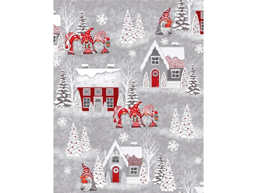 Vaflovina - utěrkovina domky a červení skřítci